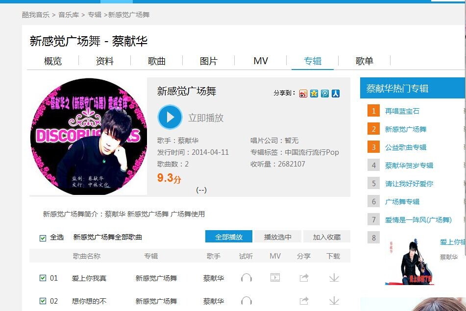 酷我音乐-新感觉广场舞-蔡献华-收听量突破200多万