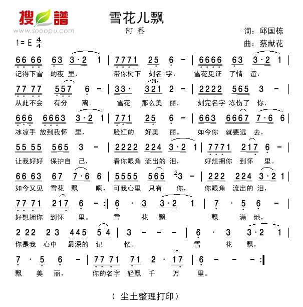雪花儿飘-简谱-蔡献华.