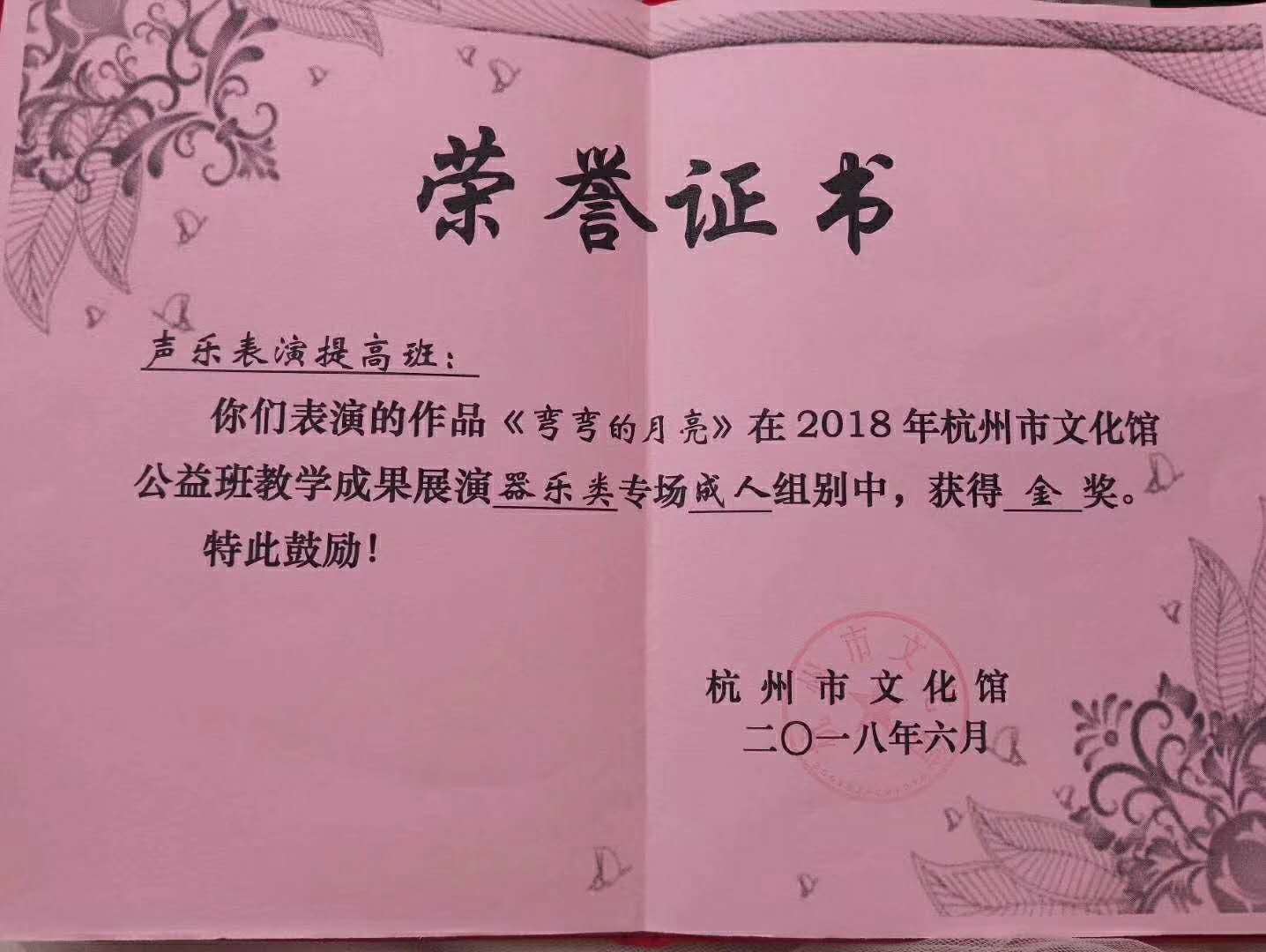 文化馆公益班教学成人组金奖杭州海宏音艺术