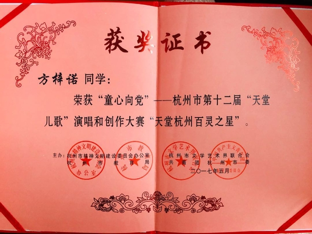 方梓诺天堂儿歌百灵之星杭州海宏音艺术