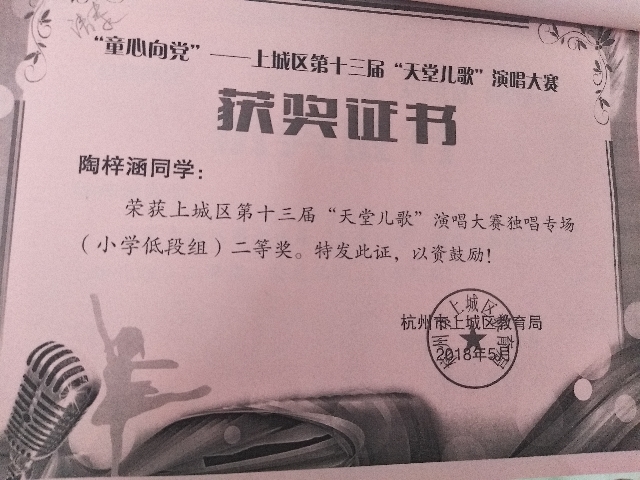 陶梓涵十三届天堂儿歌二等奖杭州海宏音艺术
