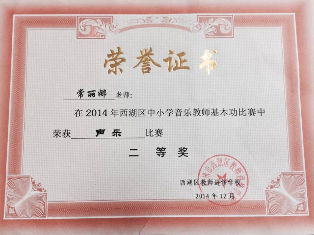 2015.1声乐导师常丽娜音乐教师大赛声乐比赛获二等奖