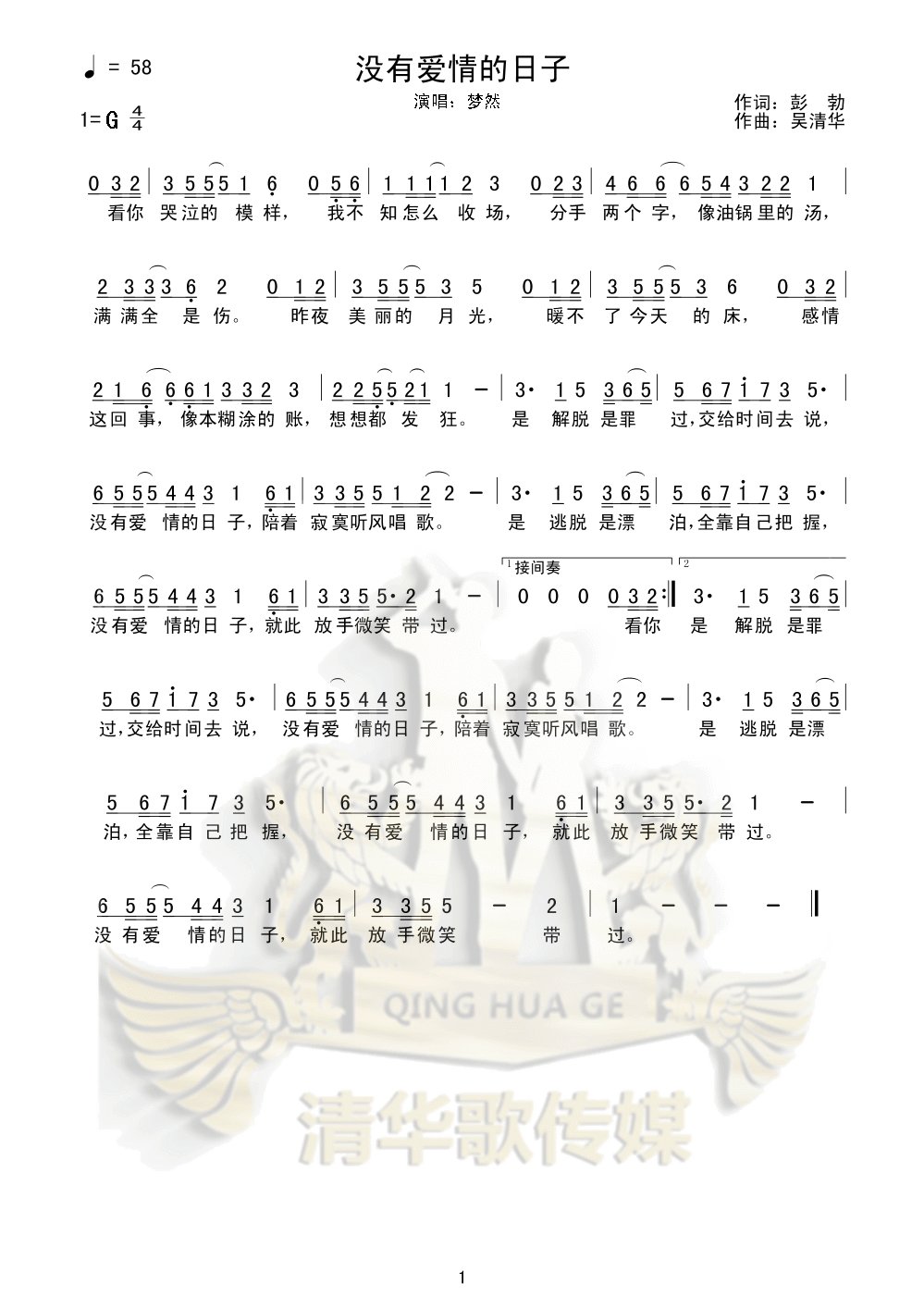 没有爱情的日子(简谱)
