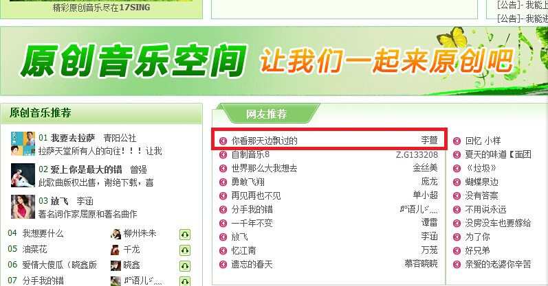 排行榜17SING中国原创音乐社区
