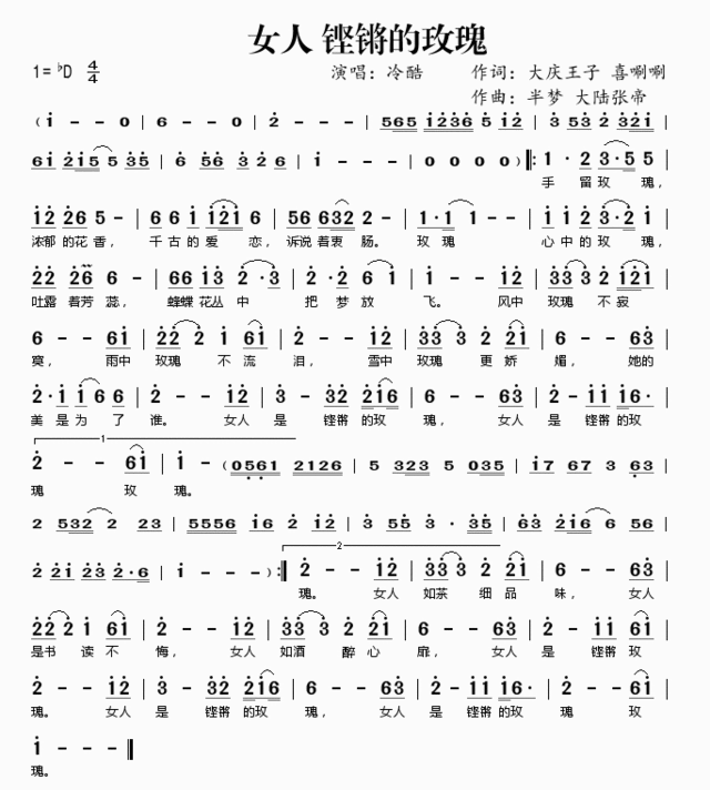 女人铿锵的玫瑰-简谱