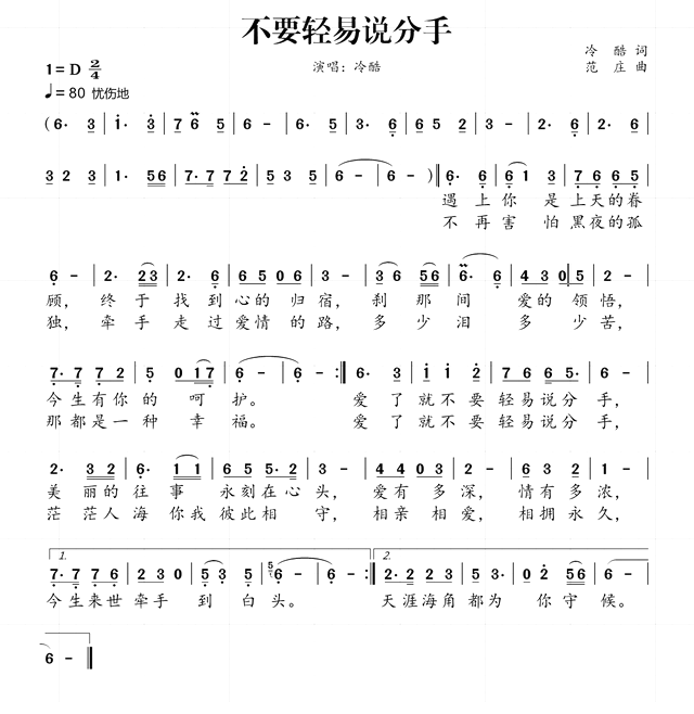 不要轻易说分手-简谱