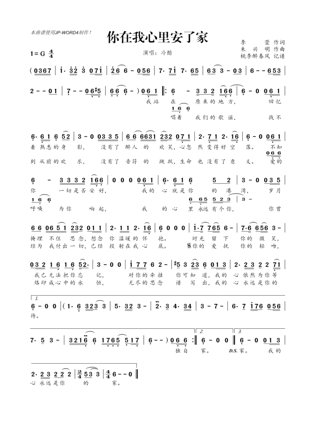 你在我心里安了家-简谱
