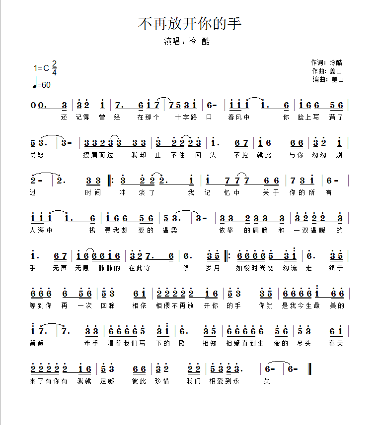 不再放开你的手-简谱