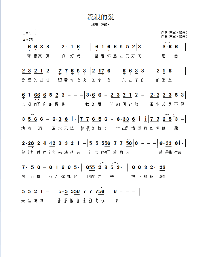 流浪的爱-简谱