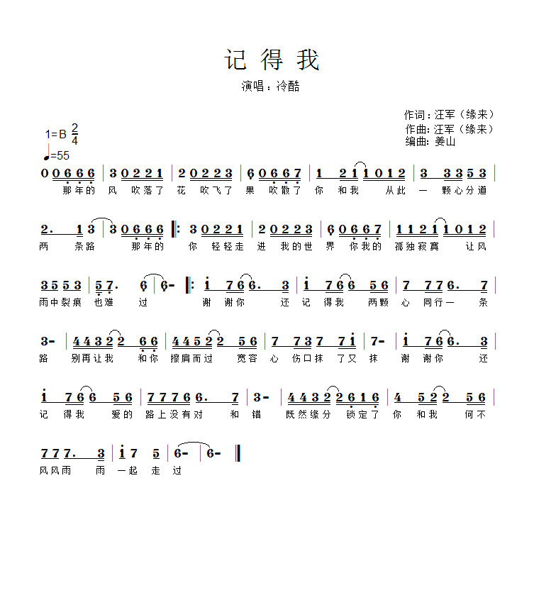 记得我-简谱