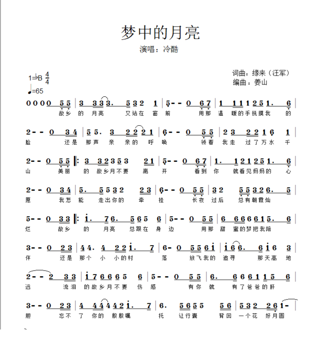 梦中的月亮-简谱