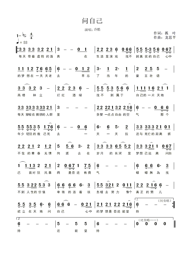 问自己-简谱