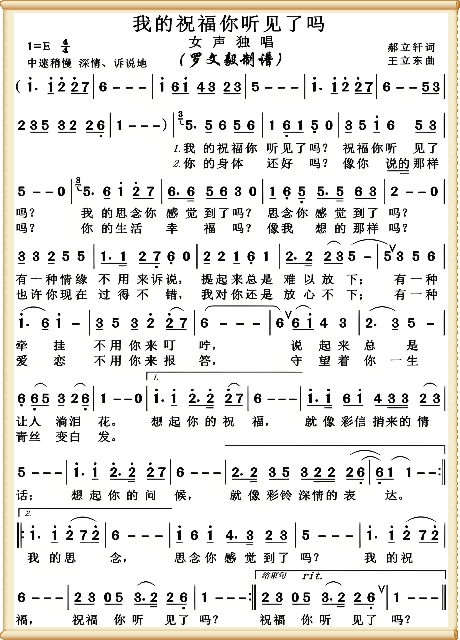 我的祝福你听见了吗-简谱