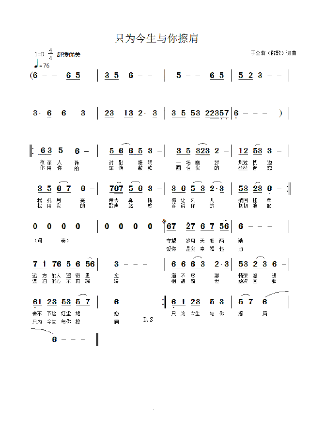 只为今生与你擦肩-简谱