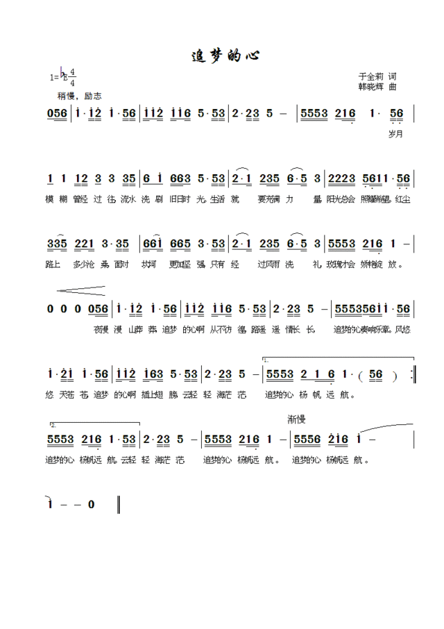 追梦的心-简谱