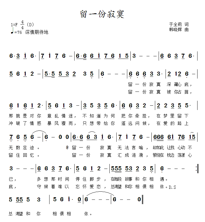 留一份寂寞-简谱