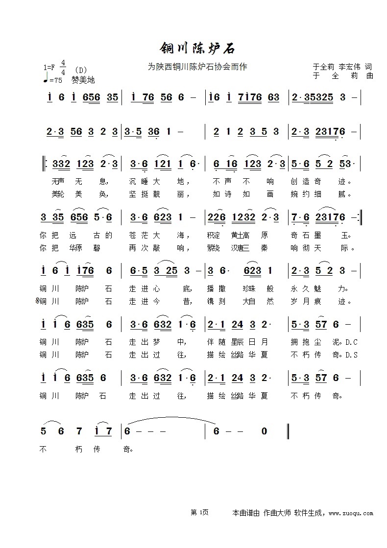 铜川陈炉石-简谱