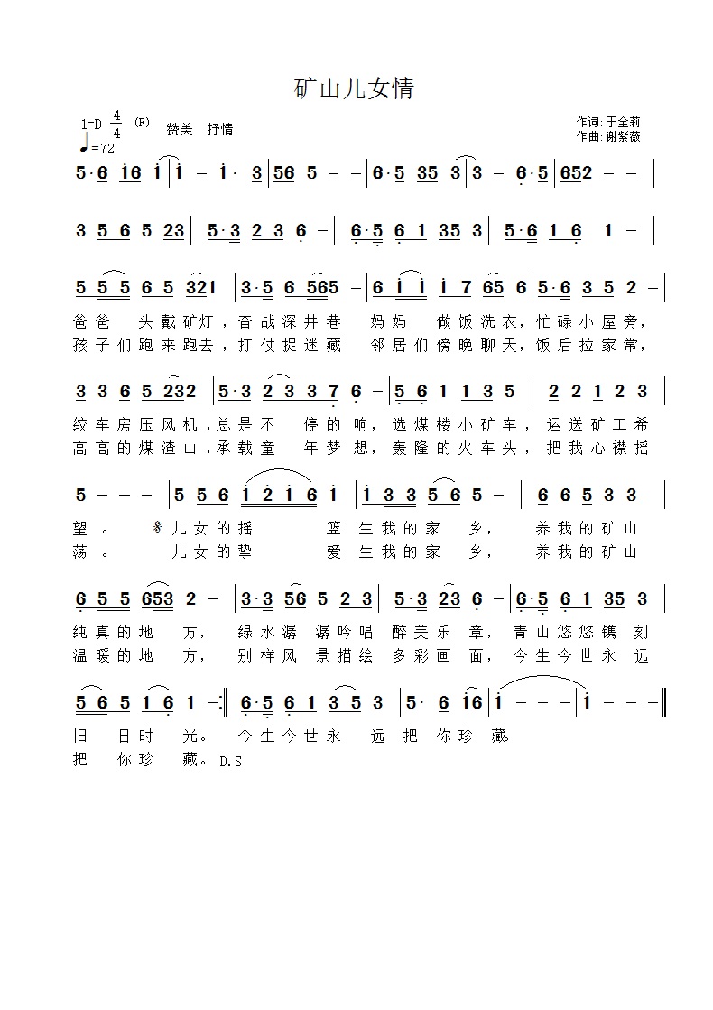 矿山儿女情-简谱
