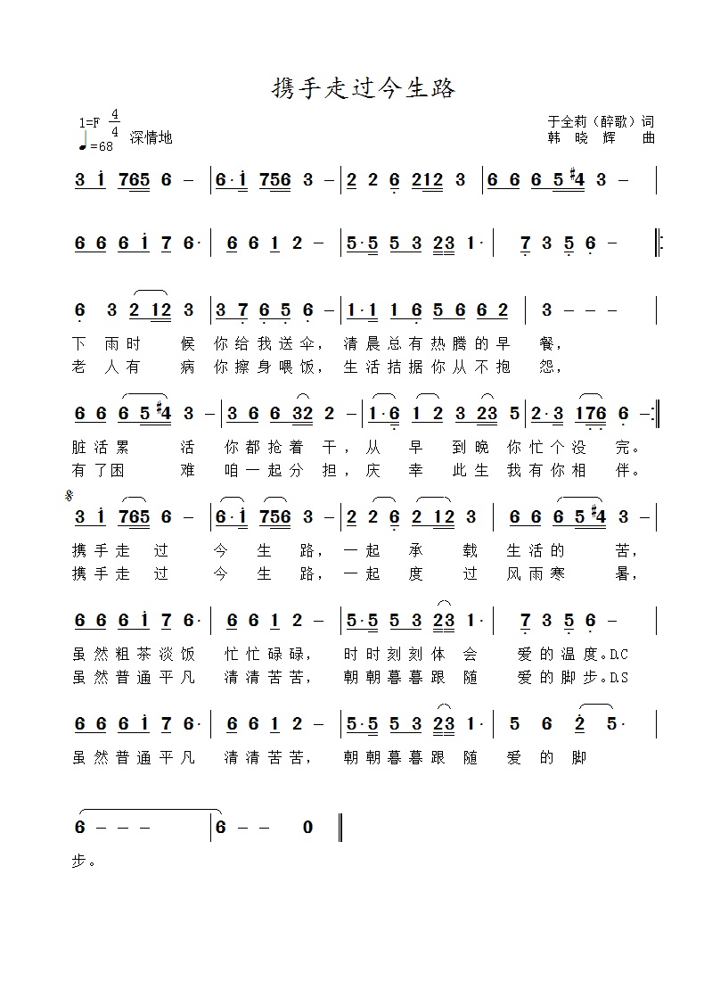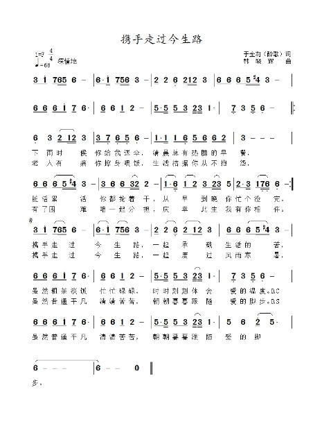 携手走过今生路-简谱