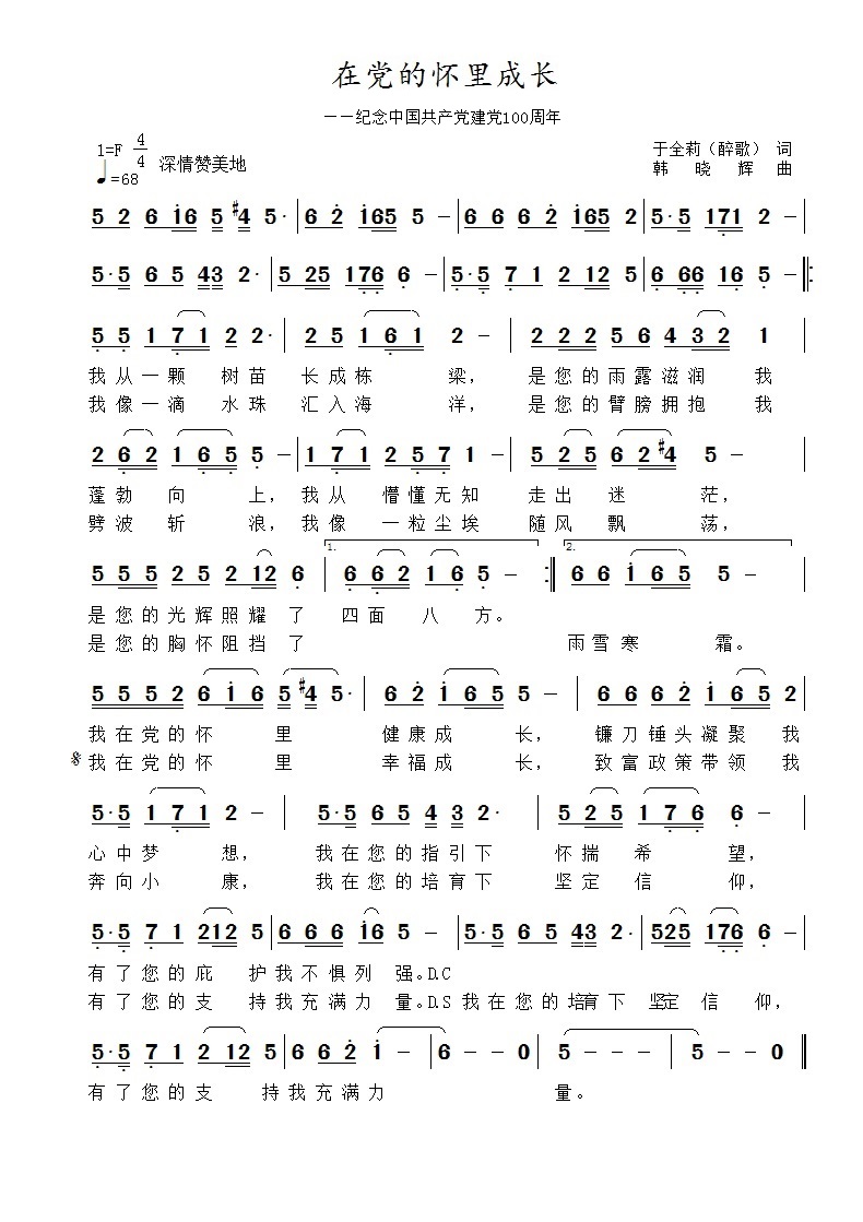 在党的怀里成长-简谱