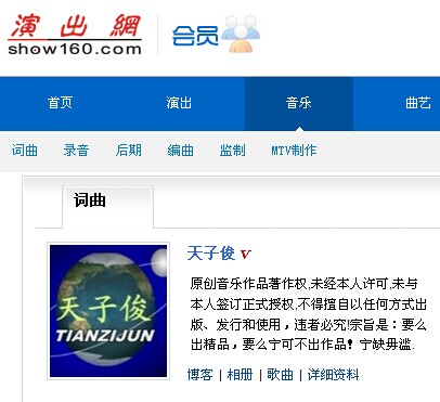 中华演出网词曲会员中心首页