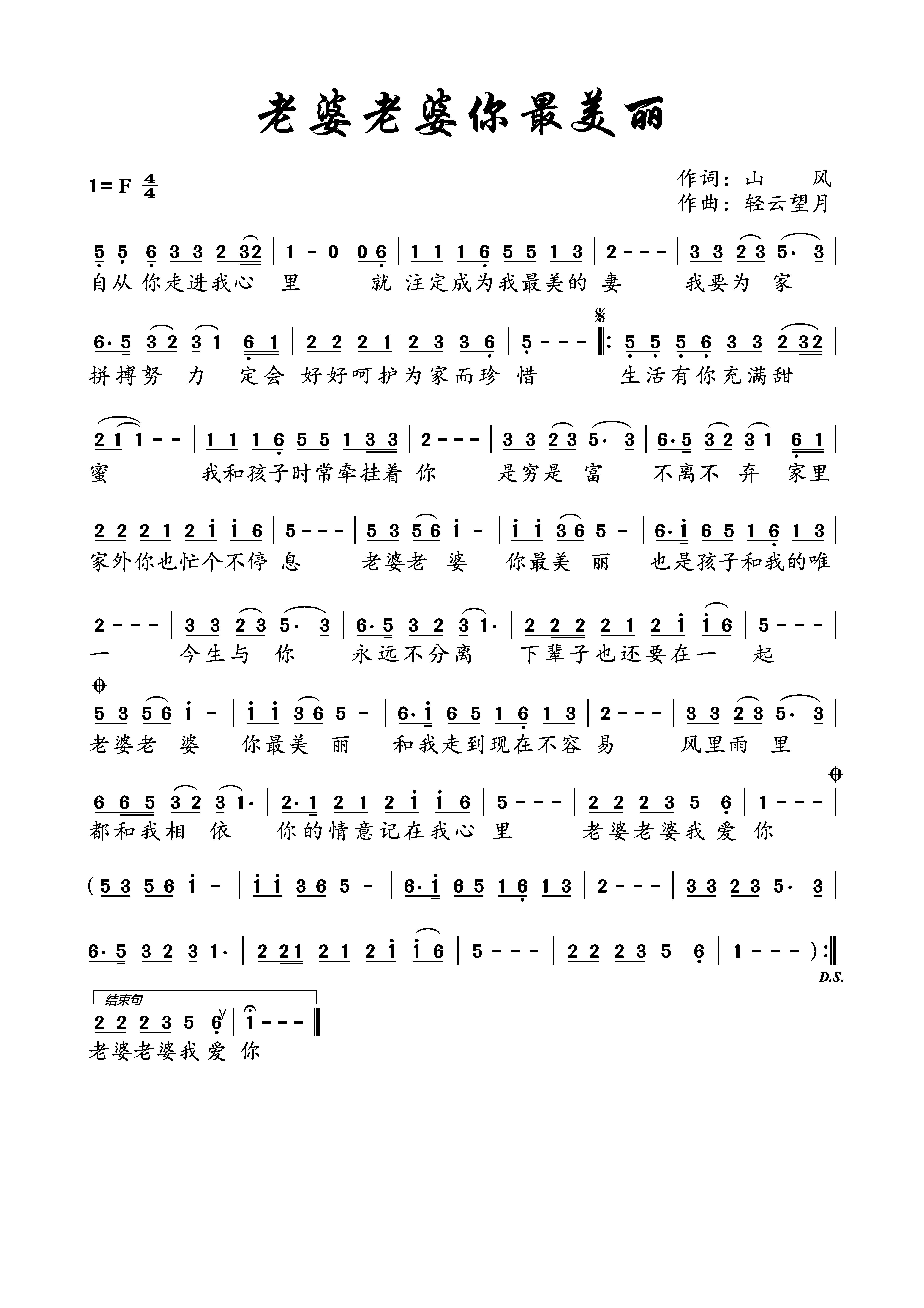 老婆老婆最美丽\老婆老婆你最美丽-简谱
