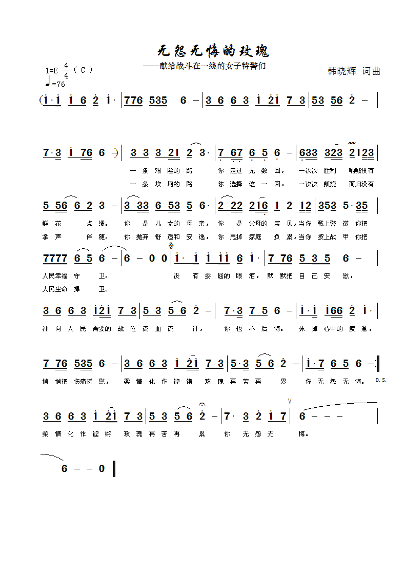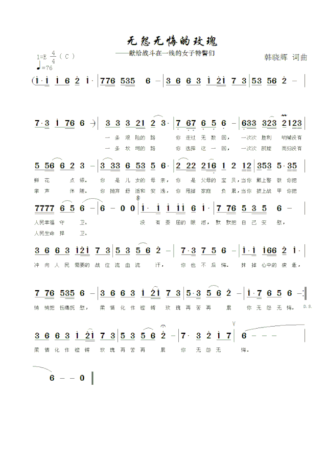 无怨无悔的玫瑰-简谱