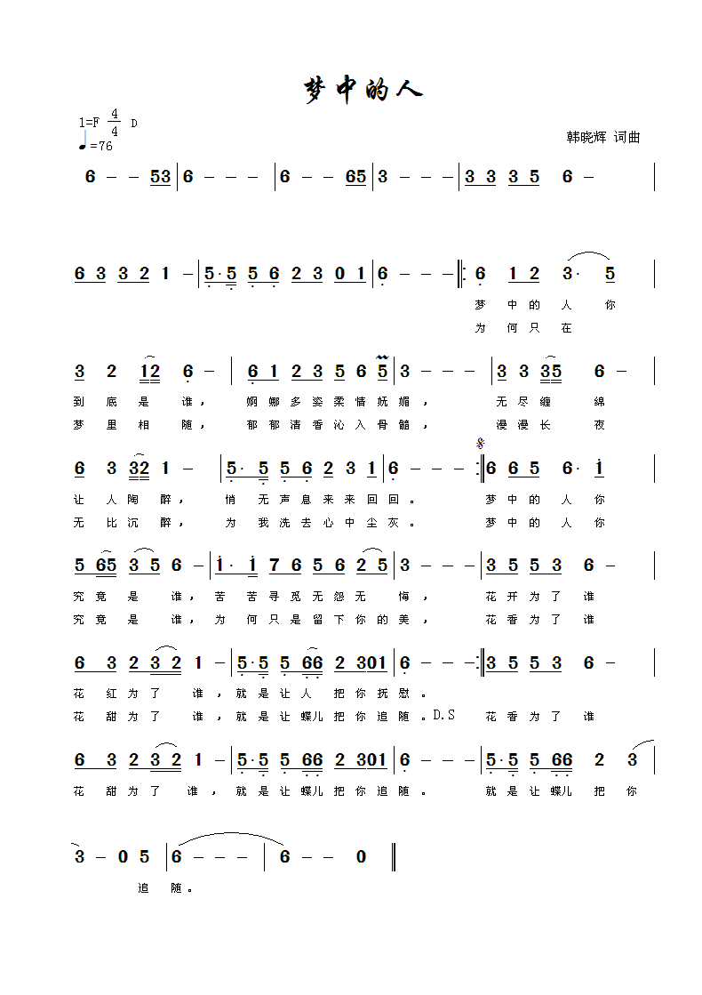 梦中的人-简谱