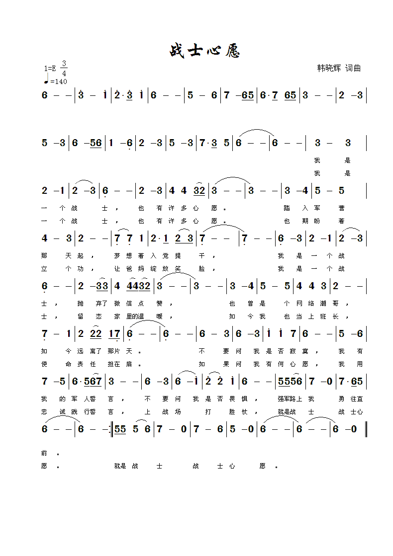 战士心愿-简谱