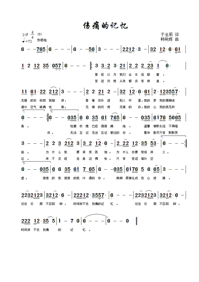 伤痛的记忆-简谱