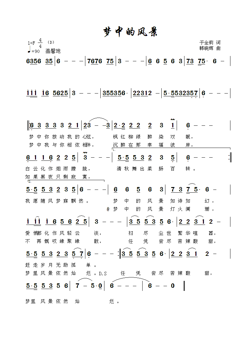 梦中的风景-简谱