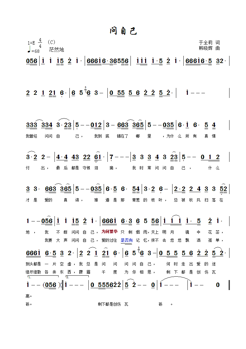 问自己-简谱