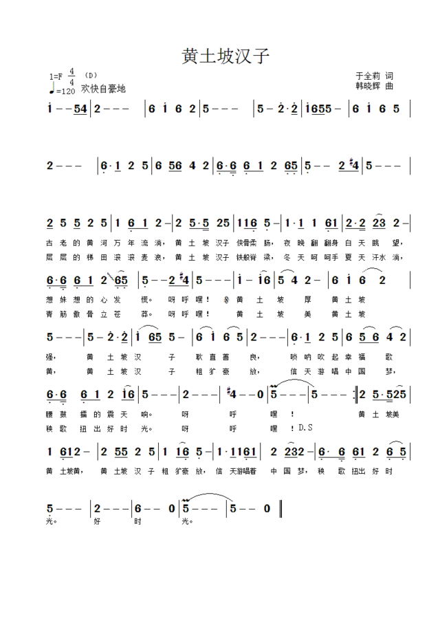 黄土坡汉子-简谱