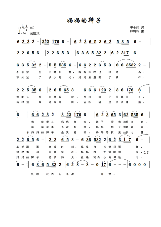 妈妈的辫子-简谱