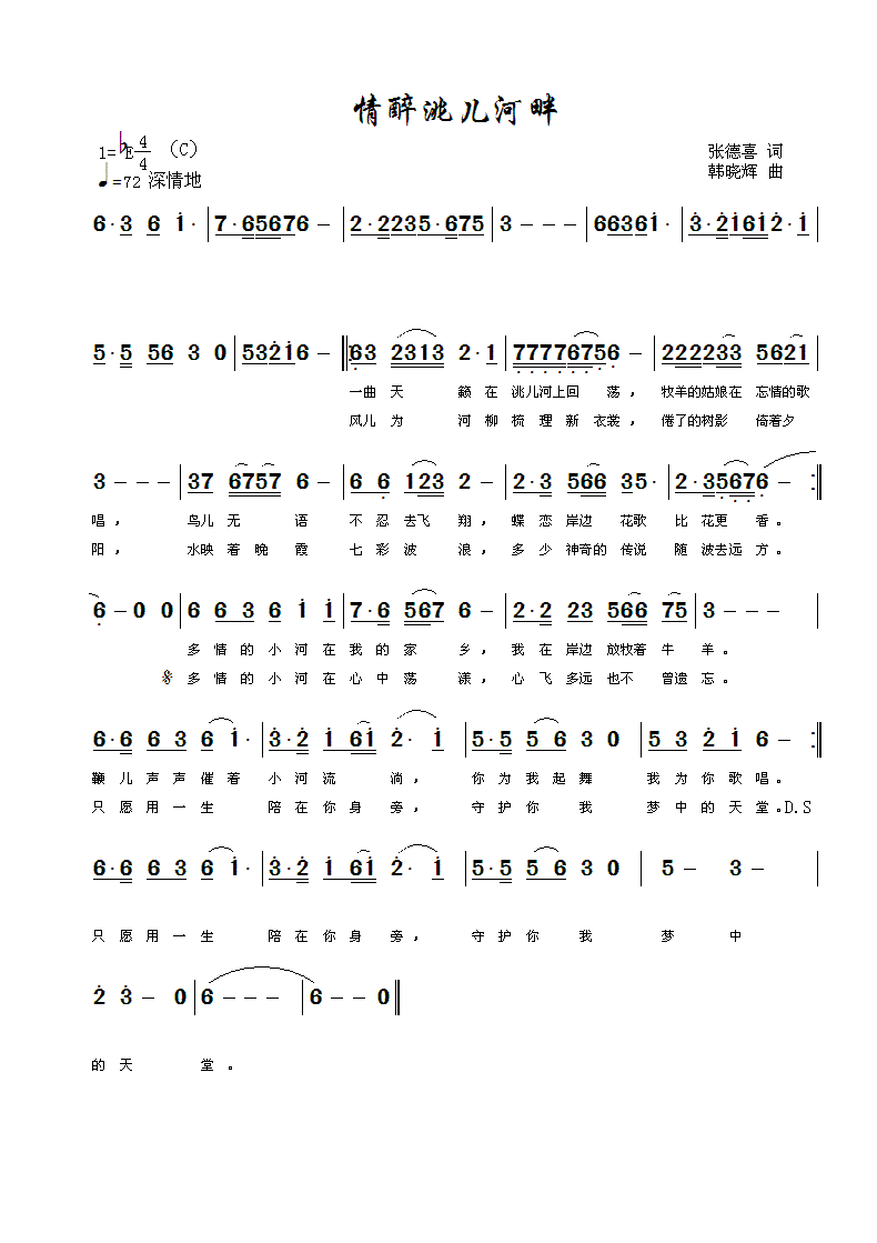 情醉洮儿河畔-简谱