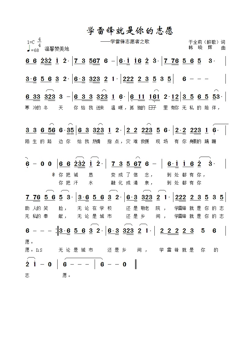 学雷锋就是你的志愿-简谱