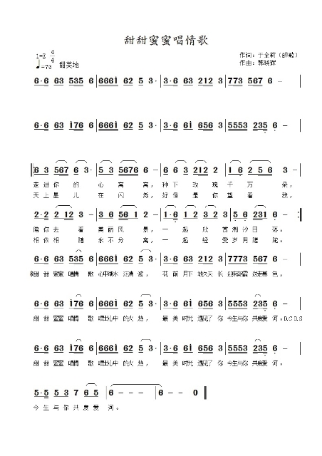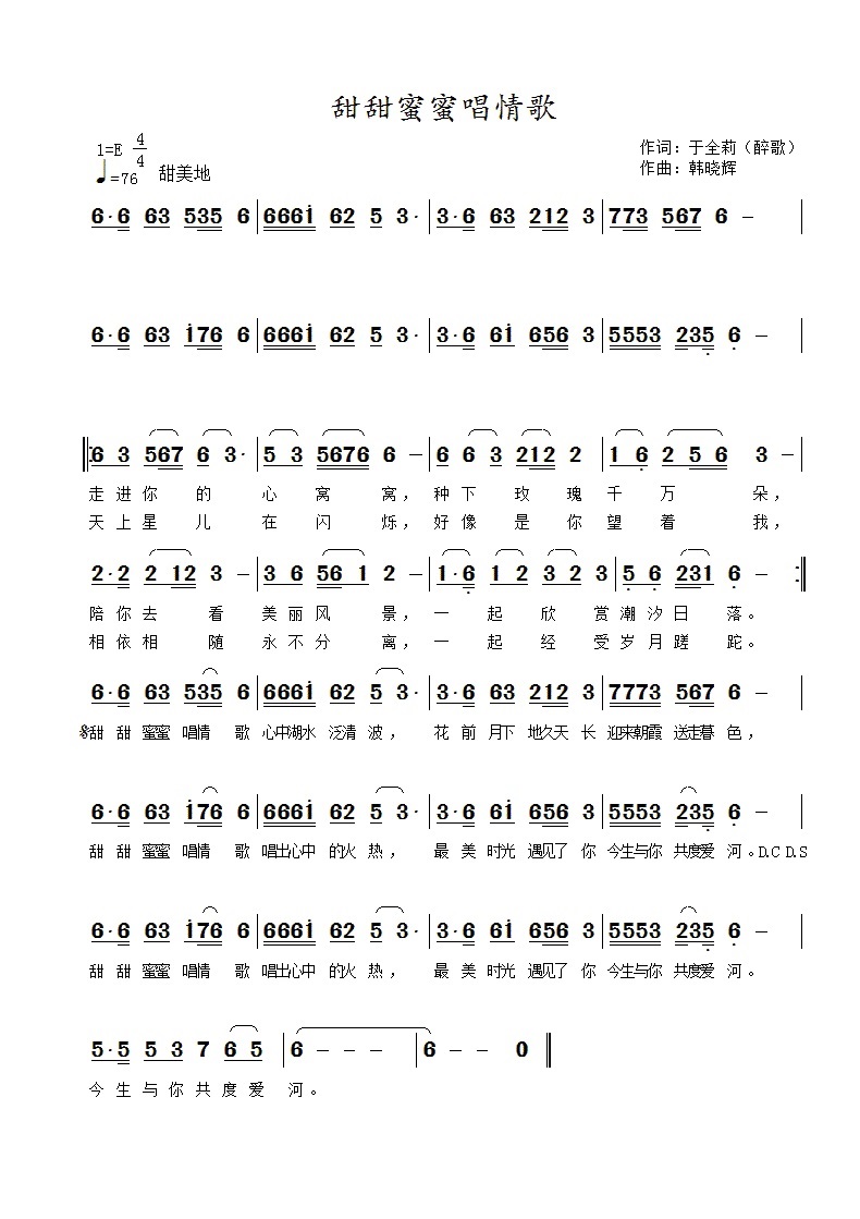 甜甜蜜蜜唱情歌-简谱