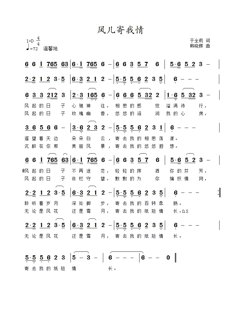 风儿寄我情-简谱