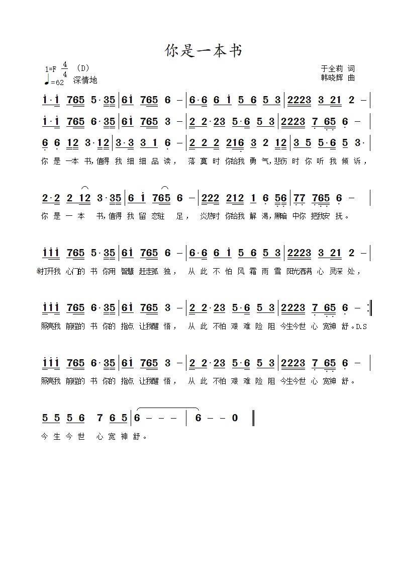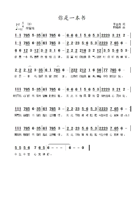 你是一本书-简谱
