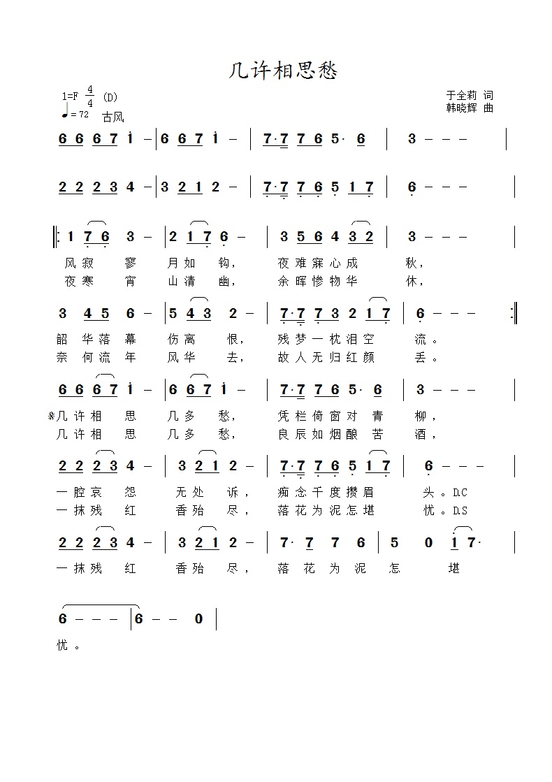 几许相思愁-简谱