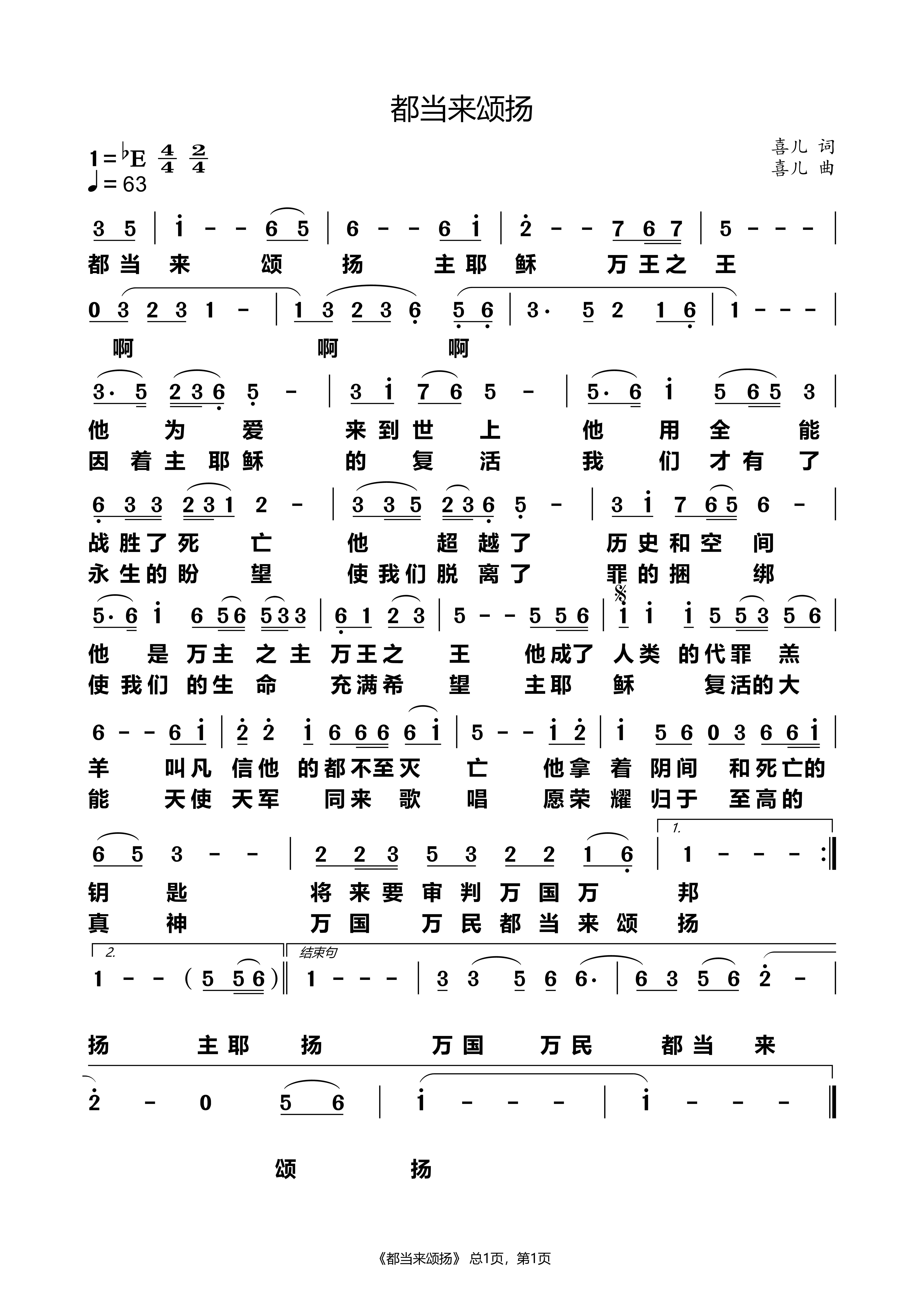 都当来颂扬 单声谱