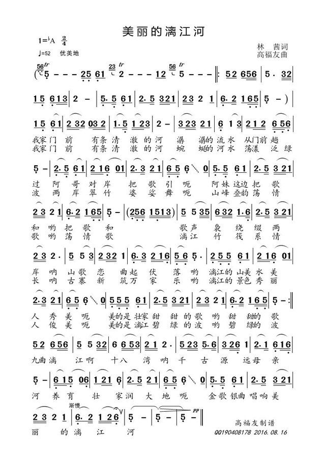美丽的漓江河歌谱