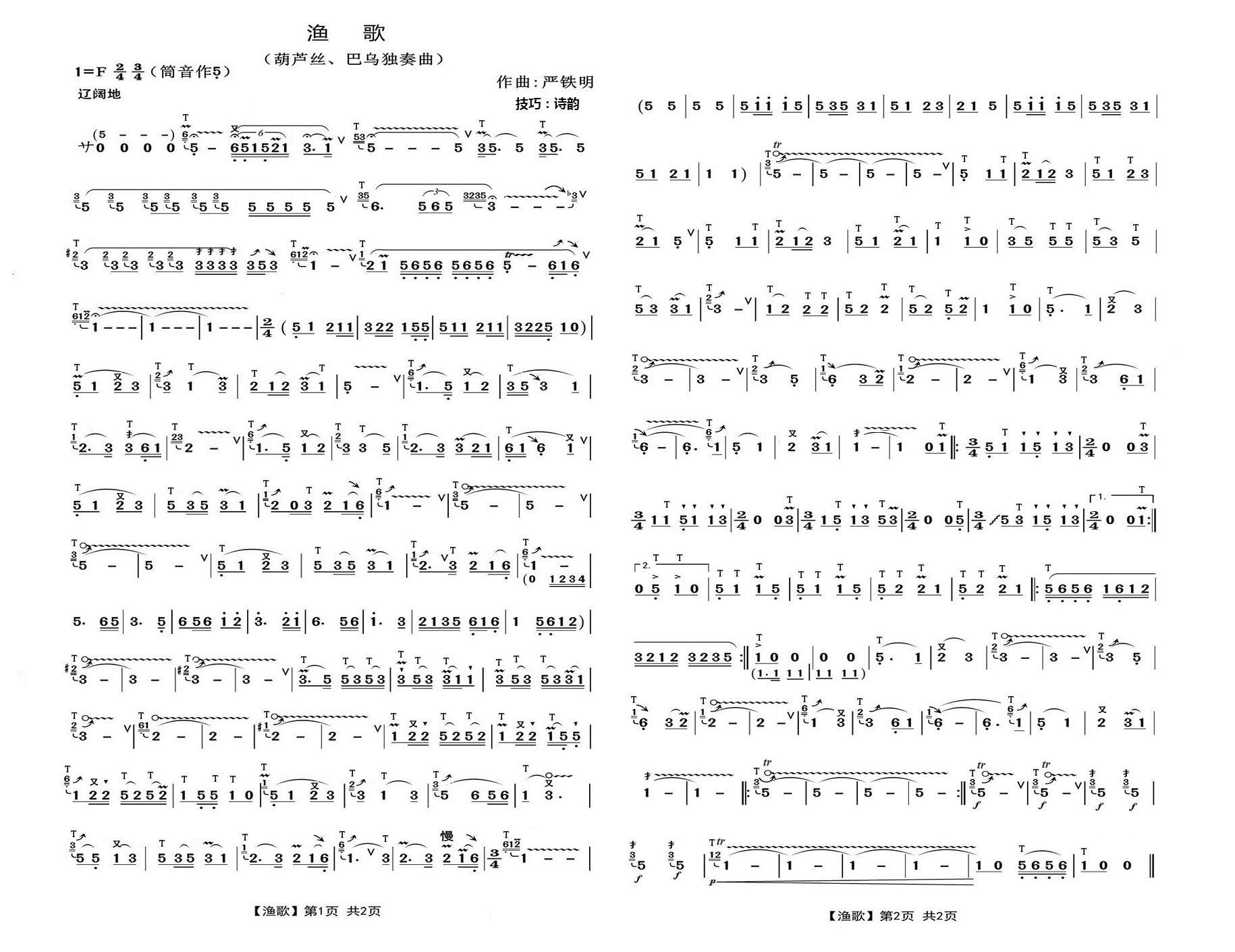葫芦丝基础曲谱【