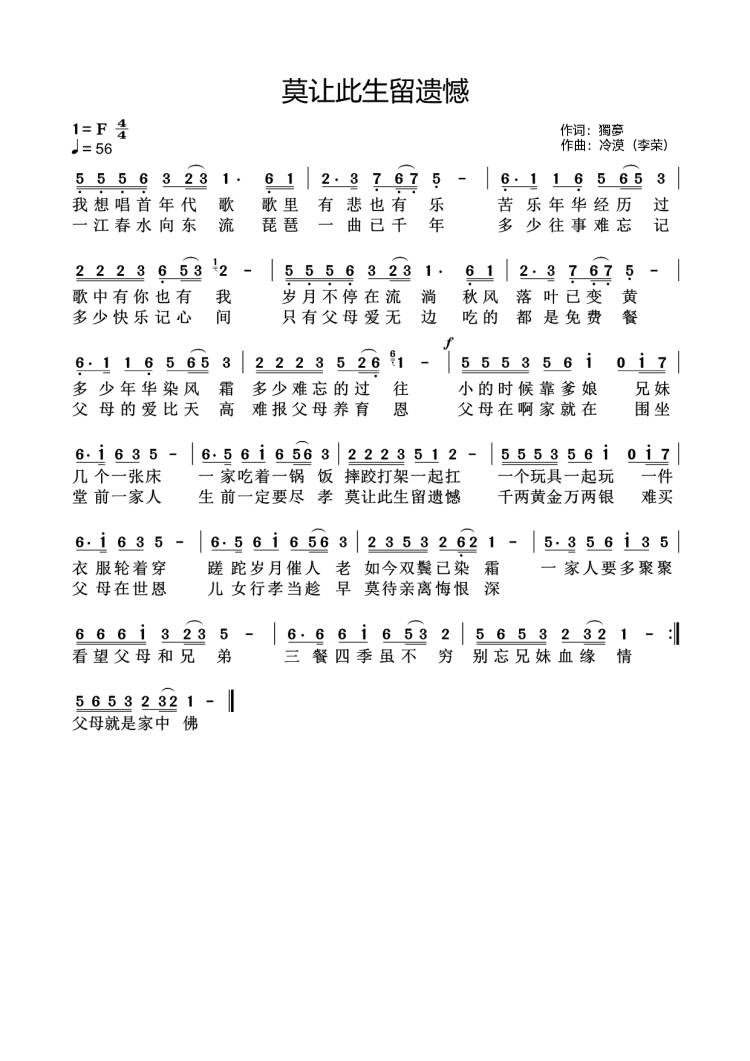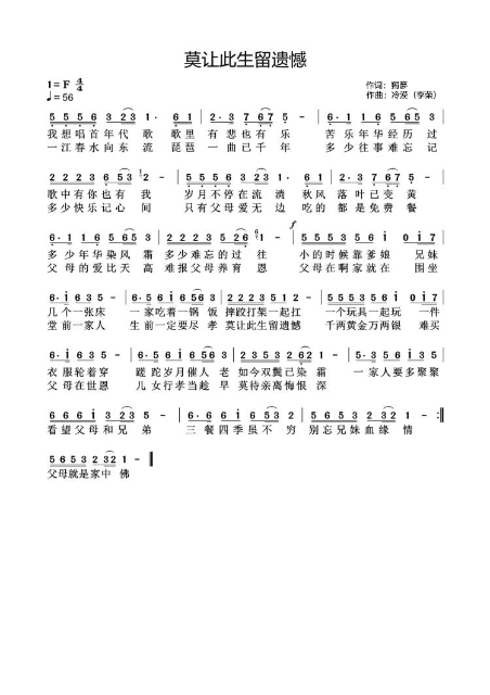 歌曲:莫让此生留遗憾