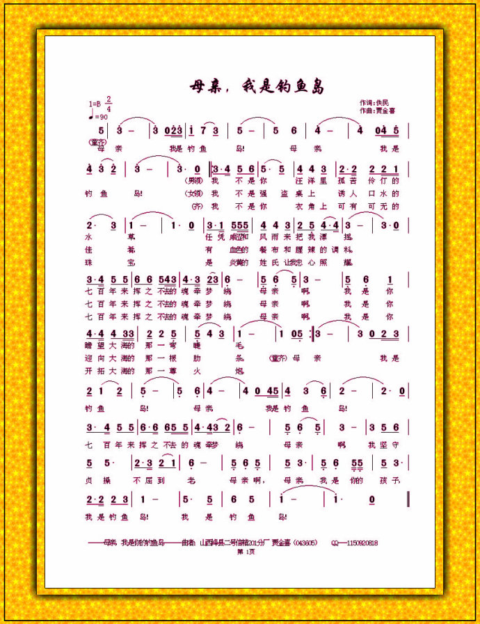 母亲我是钓鱼岛--贾金喜作品