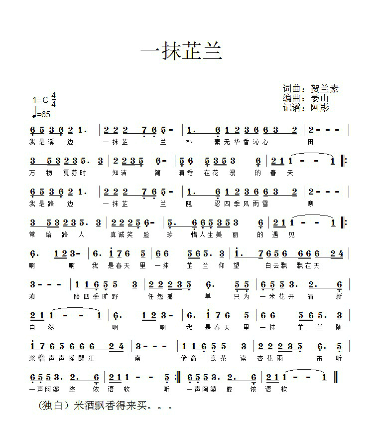 一抹芷兰(简谱)